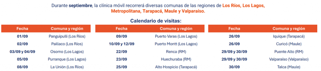 La invitamos a seguir nuestro recorrido durante agosto por la región Metropolitana, Araucanía y Los Ríos y a inscribirse en las sucursales de Los Héroes de la ciudad de paso: